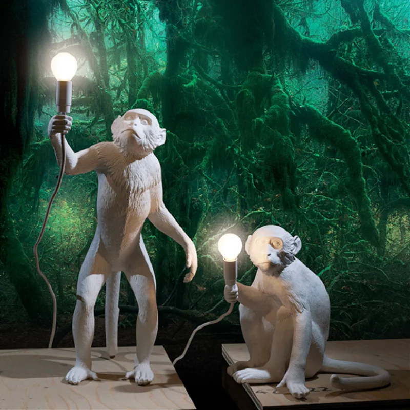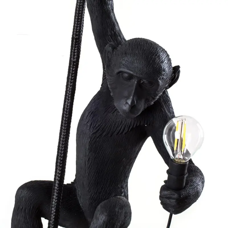 Product Name: Moderne Zwarte Aap Lamp Hars Hennep Touw Seletti Aap Lamp Wit Woonkamer Aap Lichten In Hanglampen Opknoping Lamp e27